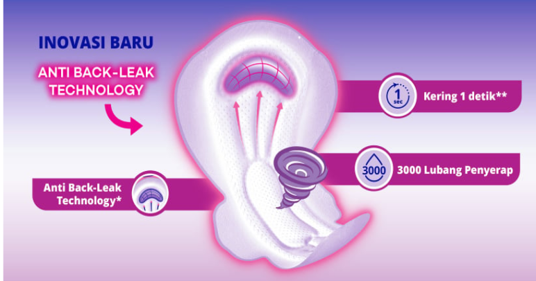Adanya fitur anti back-leak technology membantu mencegah kebocoran tersebut. Apalagi, pembalut malam ini juga memiliki fitur 3000 lubang penyerap, sehingga mampu menyerap hingga 1 detik saja. Fitur-fitur tersebut mampu membuat malam kamu semakin nyaman dan aman.